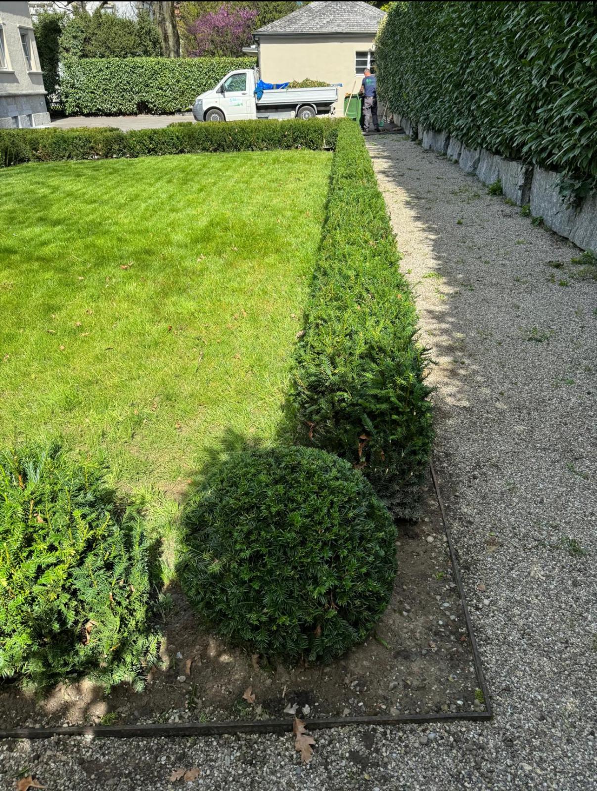 Entdecken Sie eine Auswahl unserer abgeschlossenen Projekte und laufenden Arbeiten. Jedes Bild zeigt unsere Sorgfalt, Praezision und Leidenschaft fuer Gartenpflege und Unterhalt. Lassen Sie sich inspirieren von gepflegten Rasenflaechen, blühenden Beeten und harmonisch gestalteten Aussenbereichen – genau so koennte auch Ihr Garten aussehen.